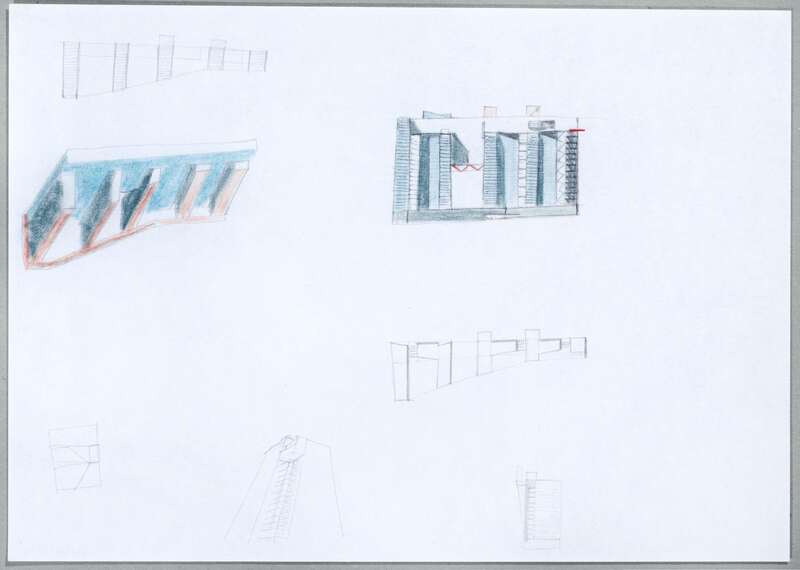 4 Modelle, 121 Zeichnungen, 83 Skizzen, 3 Collagen, 1 Gouache-Malerei 4 Siebdrucke, 6 Montagen, 2 Texte, 13 Kopien, 17 Pausen
