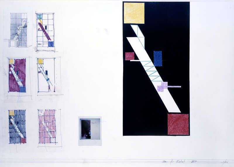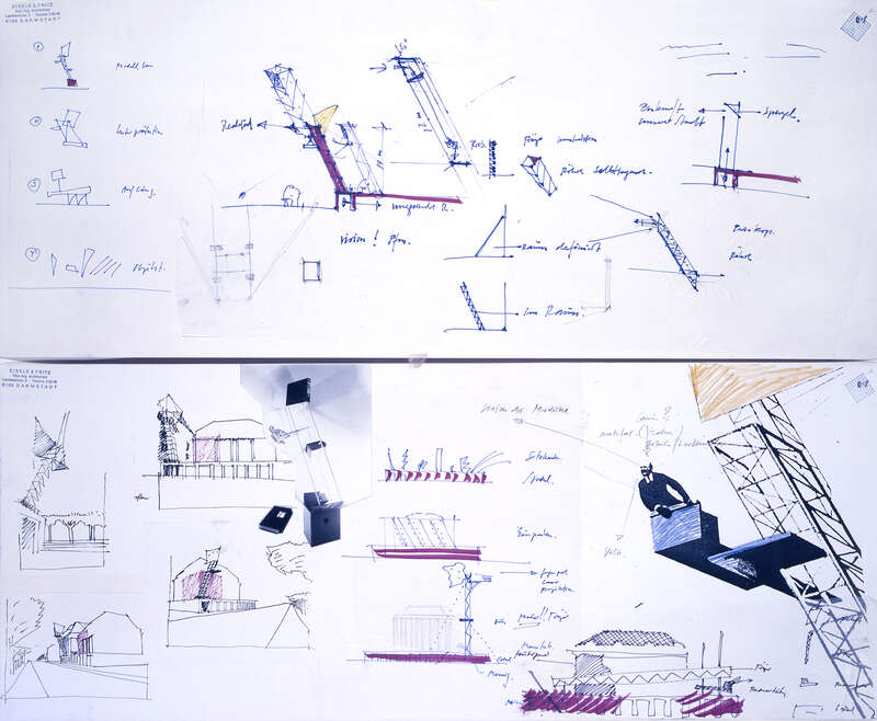 4 Modelle, 9 Collagen, 1 Aquarell, 3 Fotos, 12 Zeichnungen, 14 Kopien