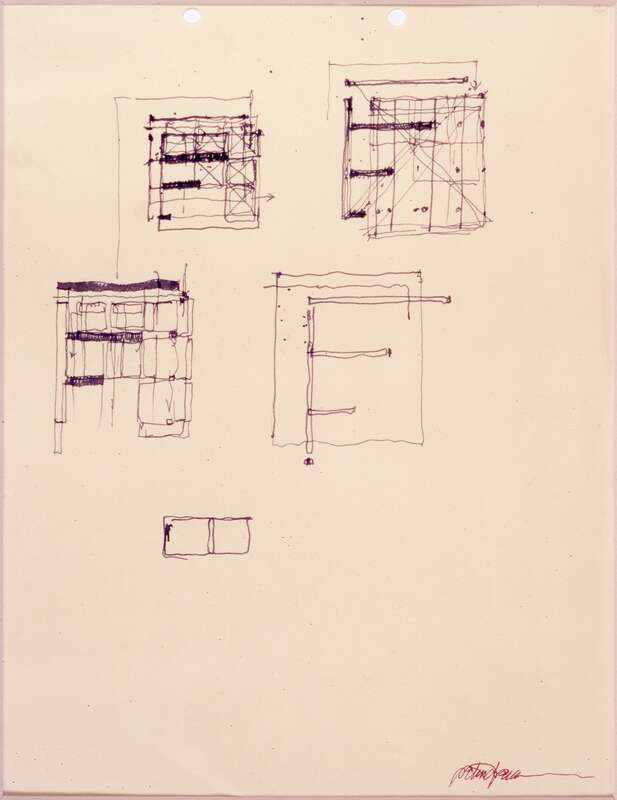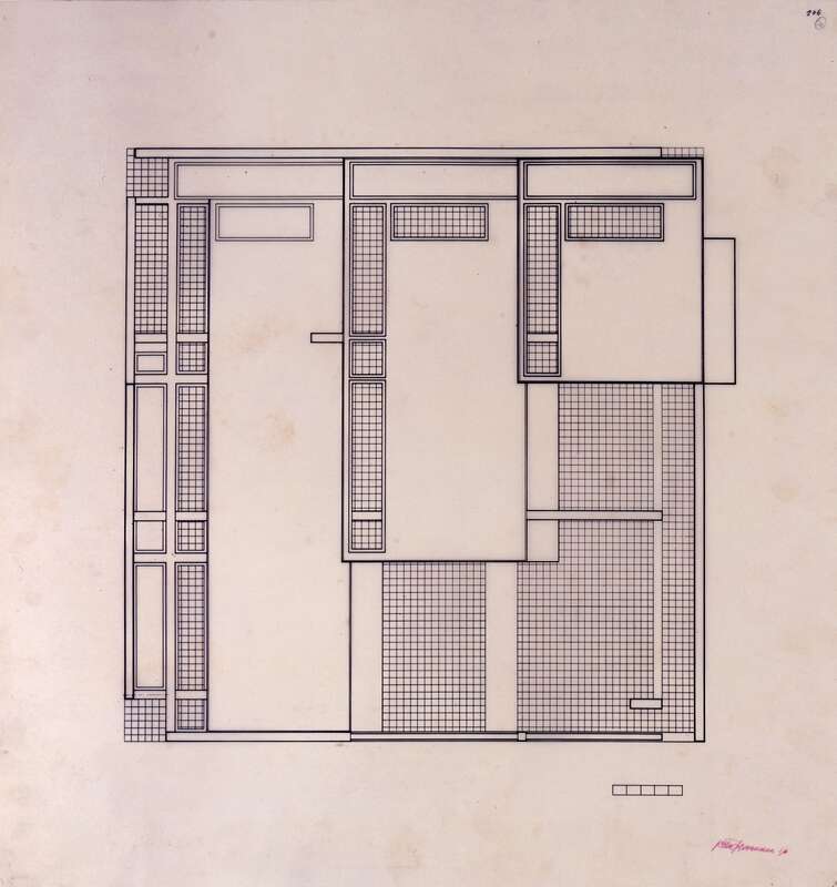 4 Modelle, 1 Collage, 57 Zeichnungen, 8 Blaupausen, 1 Druck