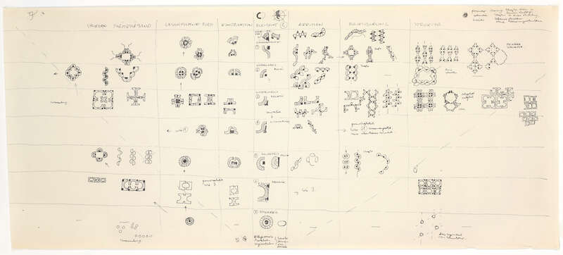 12 Modelle, 1 Bauteil, 64 Zeichnungen, 34 Pausen, 1 Skizze, 1 Grafik, 2 Plakate, 19 Kopien, 6 Fotos (darunter Dias)